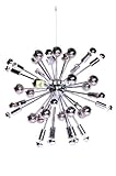 This retro-modern lamp was inspired by the sputnik satellite and features an impressive array of 40 polished chrome arms. There are 20 poles with bulbs (included) at the end, and 20 poles with metal spheres. With a diameter of 20", the Sputnik Lamp is sure to brighten up any room. Comes fully-assembled but requires professional installation by an electrician. polished chrome finish twenty 10" poles with bulbs (included) twenty 5" poles with metal sphere Free shipping within continental US and Canada
