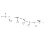The Tiella 800RAL5WHN is a Sola Rail Kit in the Matte Nickel Finish. This light fixture is from the Collection and is Underwriters Laboratories (UL) Approved for Indoor Locations. 6" Height x 108" Width x 1.4" Depth Light Kit Includes:One 12volt, 100watt electronic surface transformerFive Sola heads with glass shade accessories and lampsThree sections of 36" Rail - Enough for a nine foot runThree 3" rigid standoffsTwo decorative end capsTwo conductive connectors Requires: 5 - 20MR16/T/SP/C - 20watt 12volt GU5.3 (Bi-Pin) MR16 Halogen Light Bulb Light Bulbs Are Included Shade = Frosted Glass