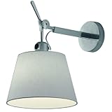 Artemide, Tolomeo Wall Shade Wall Lamp The Artemide Tolomeo Wall Shade Wall Lamp, designed by Michele De Lucchi and Giancarlo Fassina, is an adjustable wall mounted luminaire providing direct and diffused incandescent lighting. the wall support, joints, canopy, and arm are polished aluminum, while the diffuser has an aluminum frame with either parchment paper or a pale grey satin and polycarbonate fiber blend. The diffuser is available in two sizes: 7'' and 10''. It adjusts to full downward and maximum of a 30 upward positions. It mounts to standard electrical junction boxes, features an on/off switch on lamp holder and is U.L. Listed. The light comes in three sizes. The small measures 11" wide x 12.88" high with a diameter of 7.13", the medium measures 14.5" wide x 13.88" high and a diameter of 9.44", and the large measures 19.19" wide x 16" high with a diameter of 12.63". All three sizes come in either incandescent or fluorescent models. This light is part of the Tolomeo family of lights. **THIS IS AN INVENTORY SALE ITEM WITH LIMITED STOCK AND WILL BE AVAILABLE ON A FIRST COME, FIRST SERVE BASIS. **